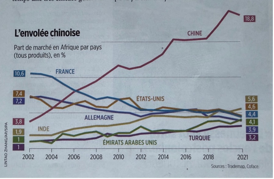 Dans le même temps, les équilibres commerciaux évoluent rapidement. La montée en puissance de la Chine en Afrique est désormais structurelle, soutenue par une vision de long terme et une présence continue depuis près d’un demi-siècle. L’Europe — et la France en particulier — voit ses parts de marché s’éroder, moins par manque d’atouts que par insuffisance de cohérence stratégique, de financements adaptés et de constance dans l’engagement.