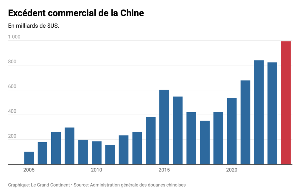 La Chine enregistre un excédent commercial record en 2025 avec près de 1.200 milliards de dollars, malgré les tensions et le recul marqué de ses échanges avec les Etats-Unis.